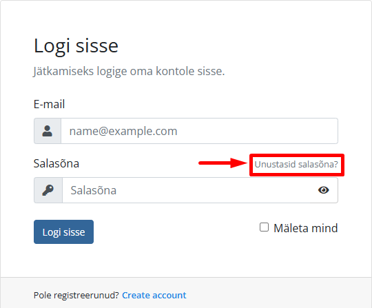 !TÄHTIS: Parooli taastamisel on vajalik, et teil oleks juurdepääs kontoga seotud e-posti aadressile. Ilma selleta on konto taastamine võimatu!